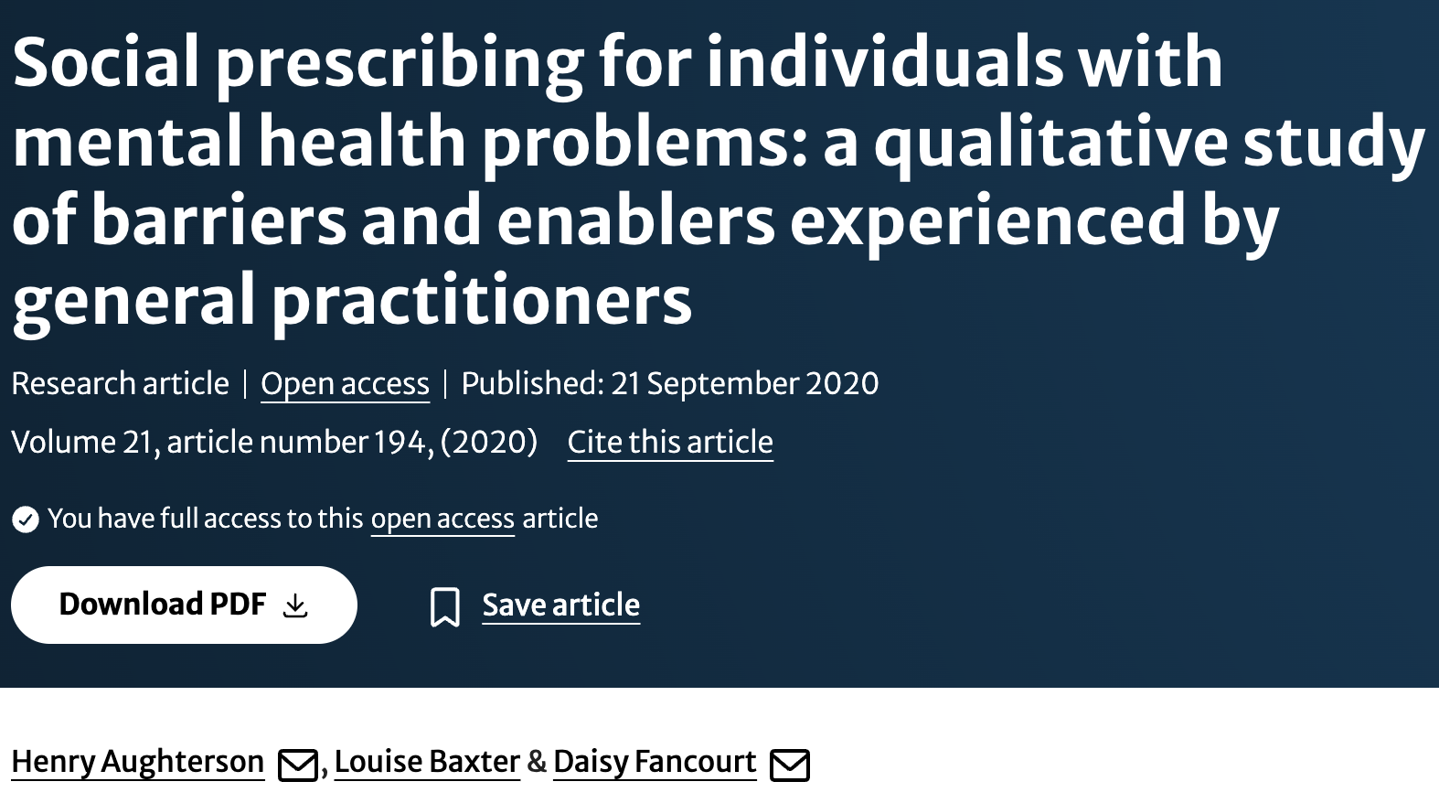 Additionally, I have a PhD (under the supervision of Professor Daisy Fancourt, one of the world’s leading academics) in Behavioural Sciences and Health (UCL), researching community group support (social prescribing) for those with mental health & addiction problems. I am an experienced researcher in this area with over 1300 citations across the field of mental health.