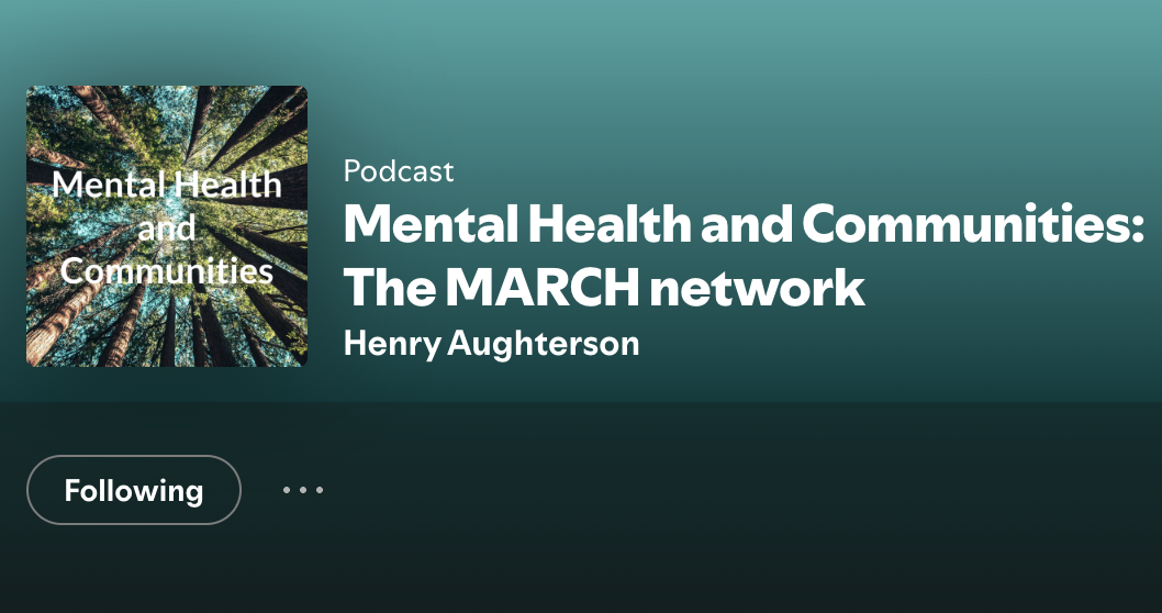 Founder and Host of (former) MARCH research network podcast series “Mental Health and Communities”, including interviews with high-profile doctors, healthcare practitioners and researchers, e.g. Sir Sam Everington, Professor Daisy Fancourt, Professor Helen Chatterjee and Marie Polley MBE